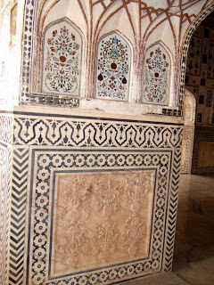 The floral glass inlays and alabaster relief work of Jas Mandir.