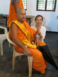Matara is one of the three districts in Southern Sri Lanka, that was ruled by Portuguese and Dutch in 16th and 18th century. The town is 160km away from the national capital Colombo linked by a 126km long express highway funded by Chinese Government. It was greatly affected by 2004 Tsunami. Though Portuguese Fort at Galle is a touristic destination, majority of its 2 1/2 million inhabitants living within the districts are farmers and fishermen. Early 2015, we were invited by a local born monk to participate in an auspicious and meritorious Maha Dana ceremony held at one of its local Buddhist Temple. Maha means great or grand and Dana means giving in Sanskrit. It includes meals, robes and requisites offering to 100 monks plus, books and stationery to 300 students. The event was sponsored by a Mahayana Temple from USA.